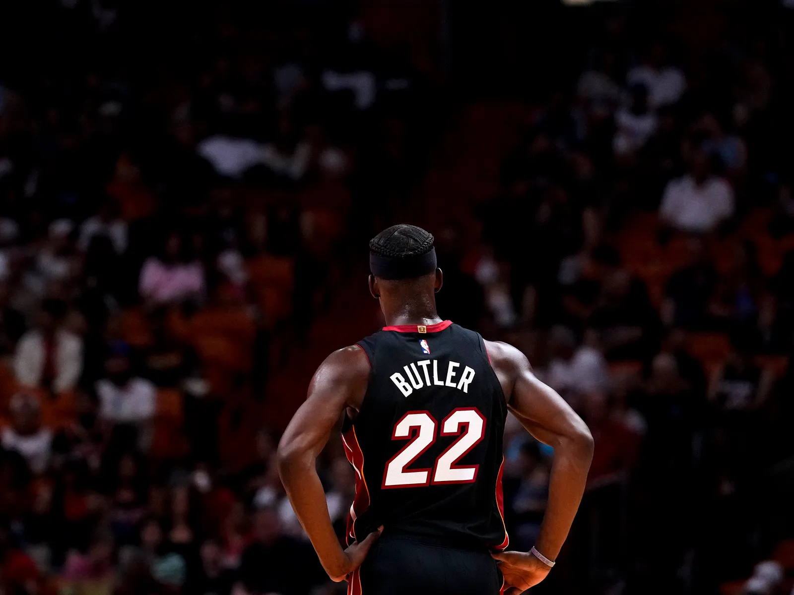 Jimmy Butler of the Miami Heat looks on in a game against the Cleveland Cavaliers. For years now, just in time for the N.B.A.